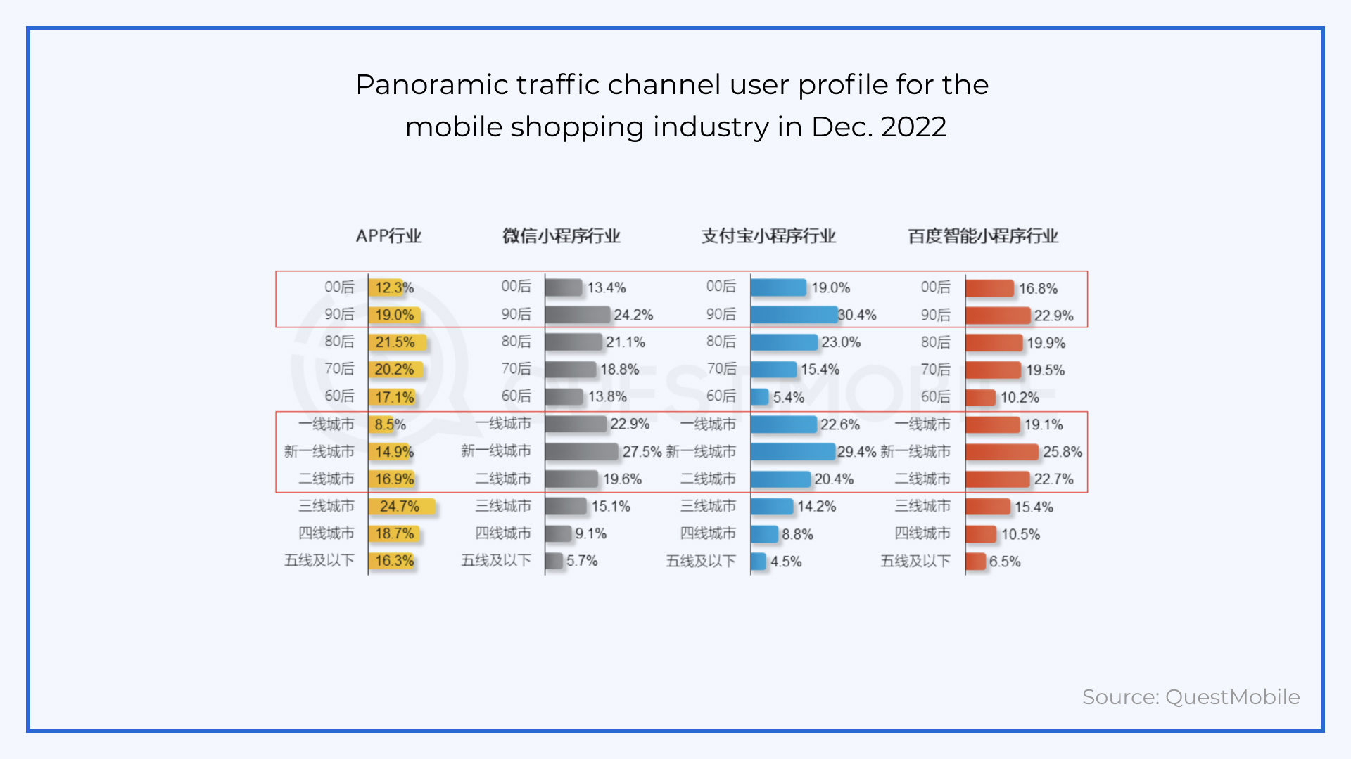 This 2022 trend is a complete reversal of the trends seen in QuestMobile’s 2018 report on WeChat Mini Programs, which saw Mini Program usage skew towards more third tier and lower cities.